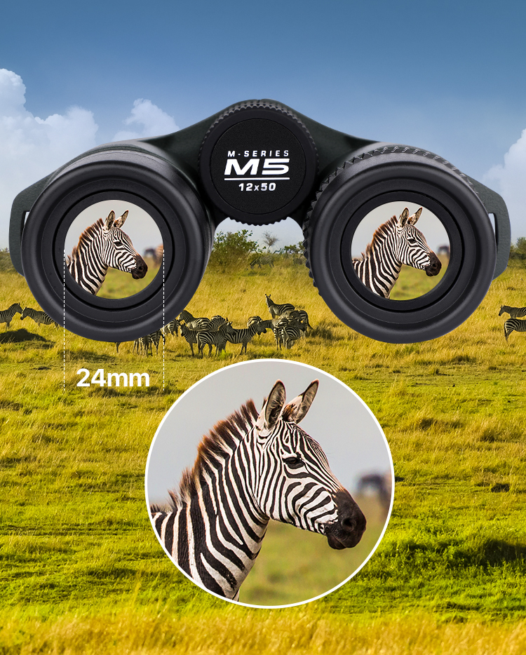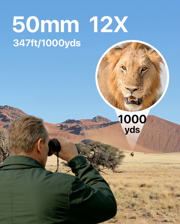 Udstyret med en 50 mm objektivlinse med stor blændeåbning og bredt synsfelt – ideel til hurtigt bevægende motiver. Den giver en højere lysindfangning og større lysstyrke, så der skabes klare og levende billeder, der bringer den store verden helt tæt på. Med 20x forstørrelse bliver hver eneste detalje synlig, og imponerende udsigter føles tættere end nogensinde før.